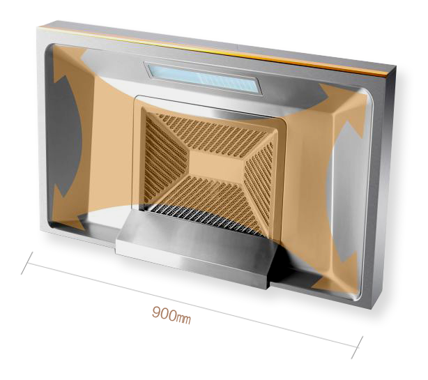 全腔900毫米控煙區(qū)比普通煙腔更寬更深,