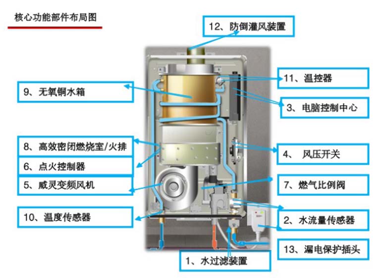 3.防CO中毒。一氧化碳是一種無色、無臭、無刺激的有毒氣體,用肉眼無法看到。所以為了避免發生意外,燃氣熱水器必須安裝在浴室外。為了使煙氣排放更加通暢,應設出氣口。使用人工煤氣的用戶須定期(每3個月或半年)委托專業人員清理燃燒器。