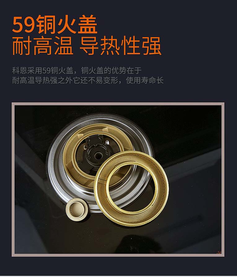 除此之外,科恩智能蒸烤消一體集成灶采用新一代燃燒系統雙聚能環(huán)設計,四通道獨立引射,熱效率更高;59銅火蓋設計,耐高溫,導熱性更強,不易變形,使用壽命更長。LOW-E隔熱玻璃材質設計,有效防止烹飪過程中誤碰導致被燙傷等風險產生,外加熱化油一鍵自動清洗功能,真正做到免清洗,讓用戶使用更安心更省心!