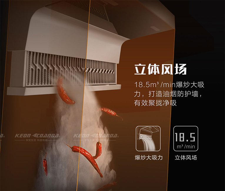 集成灶十大品牌、廚電行業(yè)十大品牌科恩電器智能體感操控煙機7510即將上市,符合現(xiàn)代人審美觀,在性能上升級,采用低位凈吸直排系統(tǒng),下潛式進風口,18.5m3/min立體風場爆炒大吸力,速吸速排,有效聚攏凈吸,打造油煙防護墻。現(xiàn)代化自動升降科技感,同時采用智能體感揮手操控,抬手輕揮開關機,告別沾滿油污的手去按鍵。當然,能有如此出色的大吸力表現(xiàn),最大核心還是采用了直流變頻系統(tǒng),澎湃動力高速運轉,智能巡航剛柔并濟。