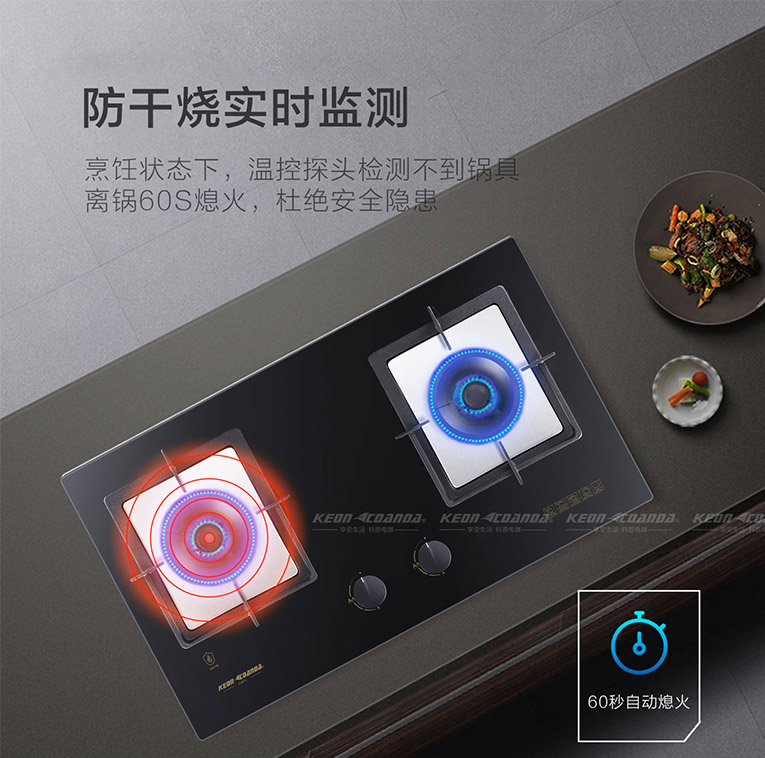 另外也無需擔(dān)心防干燒裝置會影響爆炒烹飪,集成在十大品牌、廚電行業(yè)十大品牌科恩KN610智能防干燒裝置設(shè)在左側(cè)爐頭,實(shí)現(xiàn)左邊蒸煮防干燒、右邊爆炒無限制的理想狀態(tài),此設(shè)計(jì)可以說是將燃?xì)庠钭龅搅藰O致!