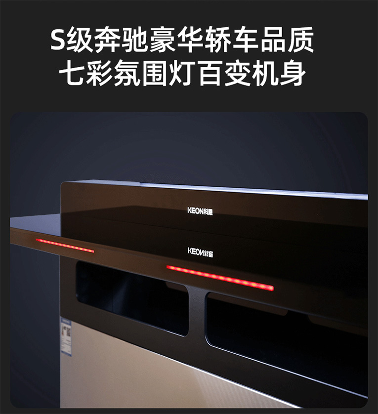 集成灶十大品牌、廚電行業十大品牌科恩S450智能語音左右蒸烤集成灶S級豪華轎車品質,七彩氛圍燈百變機身,彰顯高端大氣,能與不同家居裝修風格相適應,輕松打造幸福夢想廚房。