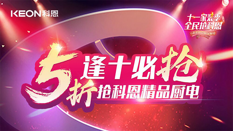 10月1日——10月23日,集成灶十大品牌、廚電行業(yè)十大品牌科恩集成灶“十一家裝季 全民搶科恩”活動開啟,終端活動玩法升級、福利加碼,打造金秋十月盛大福利狂歡盛宴,讓更多人能有機(jī)會享受到科恩集成灶十月活動帶來的福利。進(jìn)店有禮、預(yù)存有禮、凈享體驗、金蛋有禮、高鐵旅惠、換新有禮、套餐有禮、逢十必?fù)尯蓝Y巨獻(xiàn)。