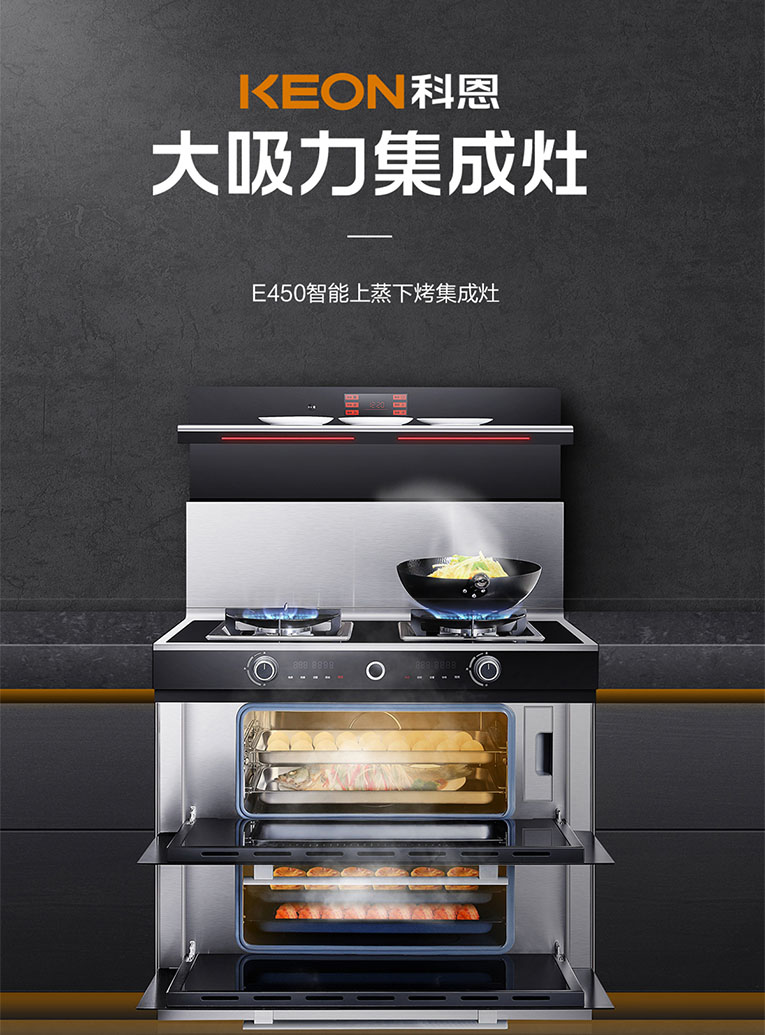 另外,科恩E450上下蒸烤集成灶還搭載智能語音控制,“你好小科”輕松掌控集成灶,大吸力無油煙,能蒸善烤美味雙收,一次性給你滿漢全席。這個冬天,安排一下集成灶十大品牌、廚電行業十大品牌科恩E450上下蒸烤集成灶,解放雙手,暖心又暖胃!