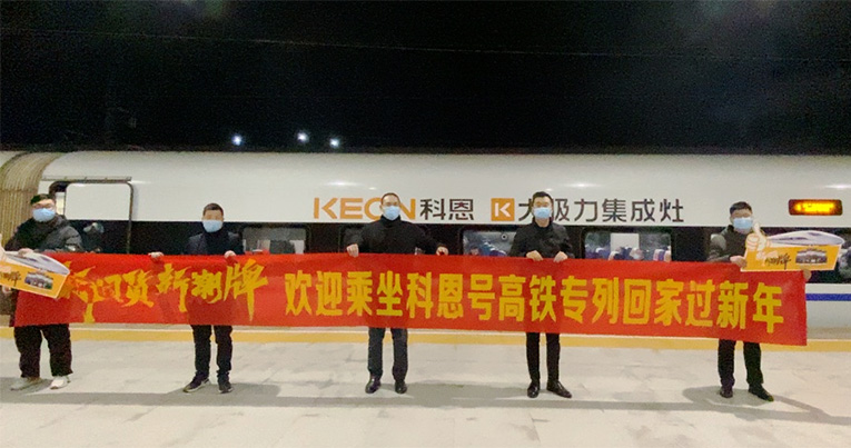 杭紹臺高鐵通車背后,預示著一個新時代的到來,同時也開啟了科恩集成灶的發展新篇章。2022.1.17春運第一天,科恩集成灶冠名的高鐵專列駛入嵊州,“科恩號”將承載春運的使命,搭載全國各地的朋友回家過新年。