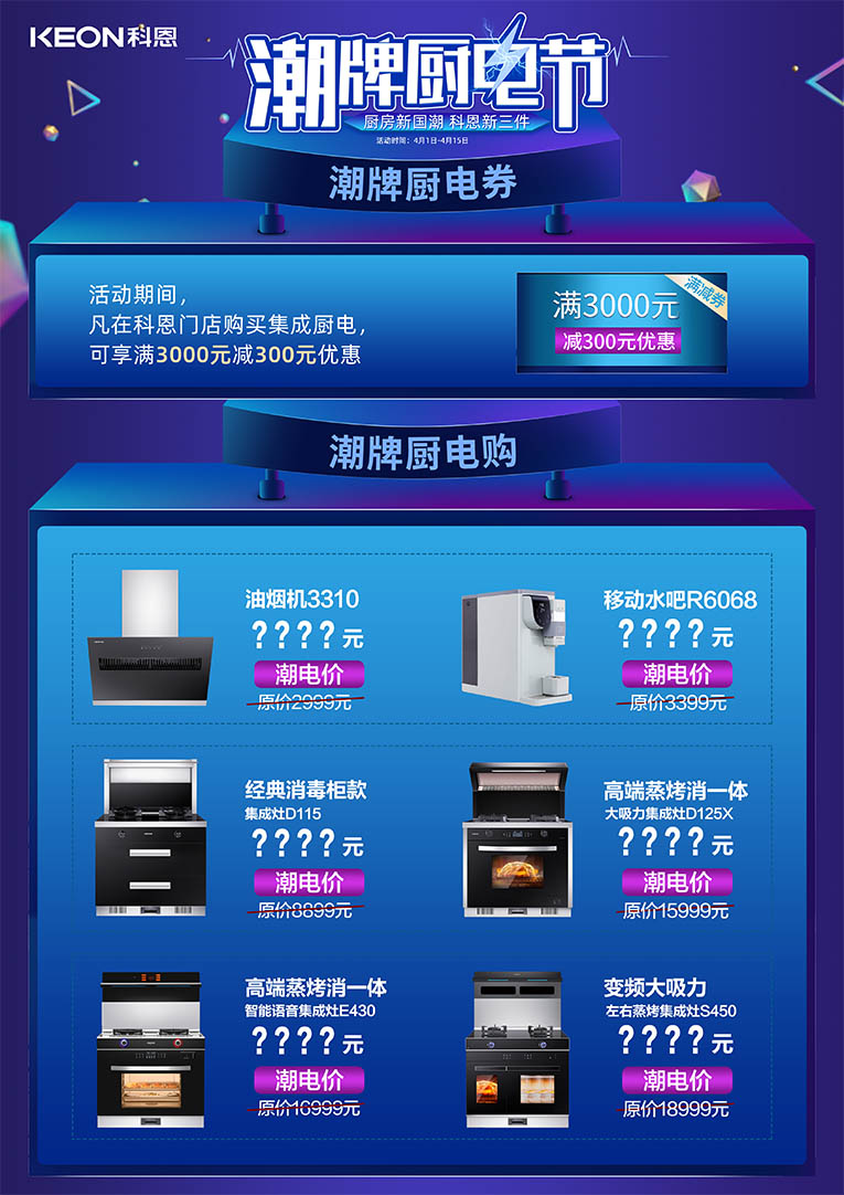 除此之外,更有科恩全國六大戰(zhàn)區(qū)同時(shí)發(fā)力,只為給全國用戶帶來瘋狂特惠!!4月1日——4月15日,進(jìn)科恩門店,潮牌廚電節(jié),更多驚喜等你揭秘~
