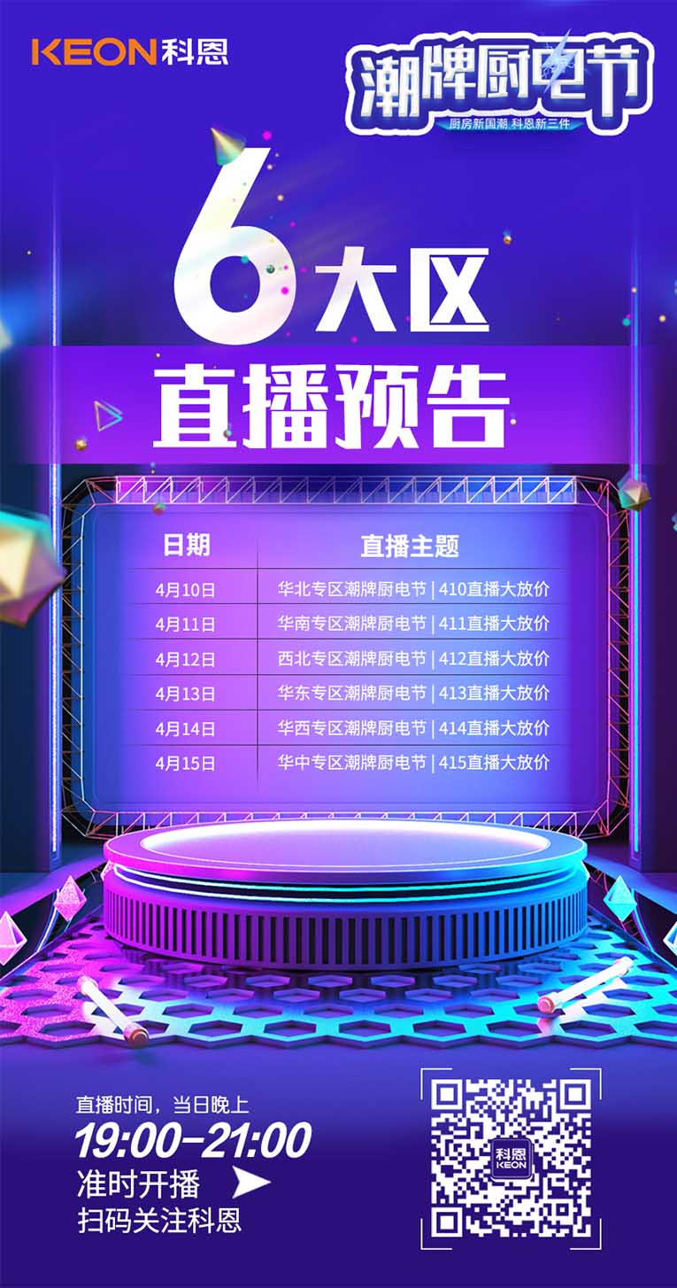 除此之外,為了更好地滿足消費(fèi)者足不出戶就能選購心儀的集成灶,科恩集成灶#廚房新國潮,科恩新三件#,潮牌廚電節(jié),全國六大戰(zhàn)區(qū)同時(shí)發(fā)力,給予貼心服務(wù)!