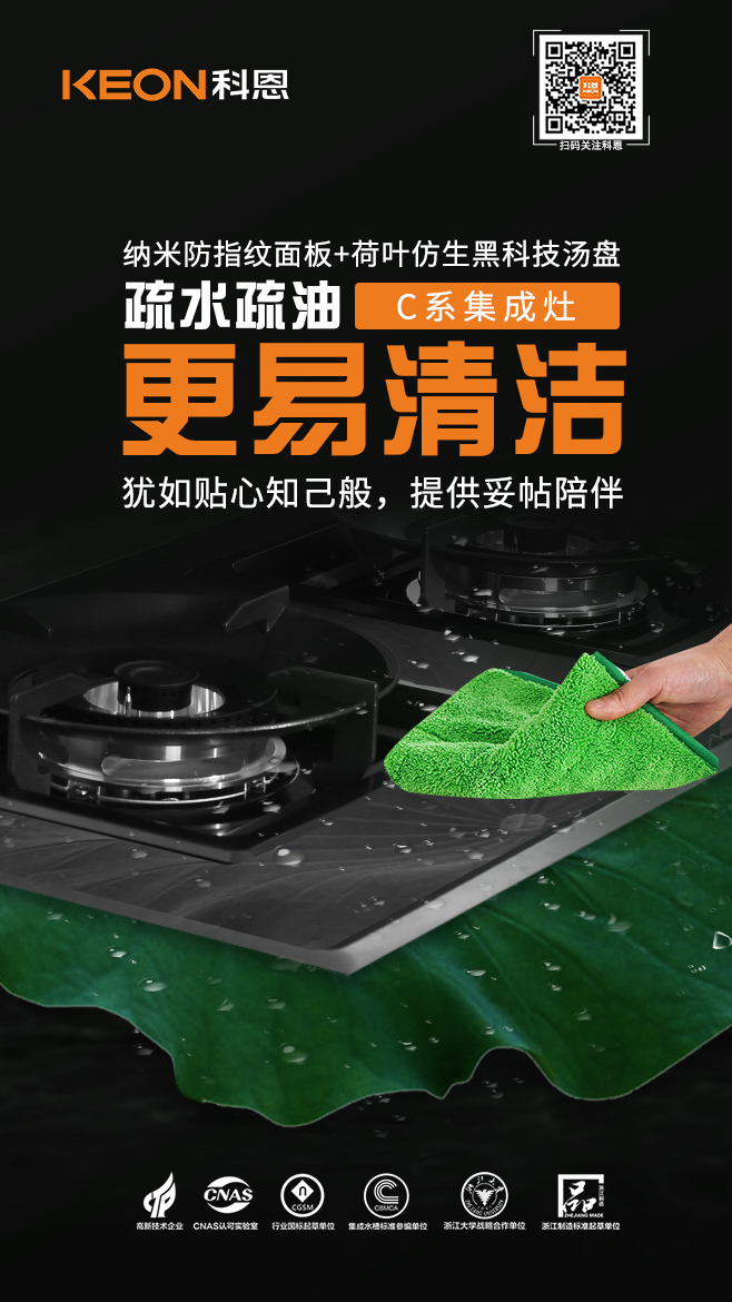 除了油煙惹人煩,還有烹飪后滿是油漬的灶臺更讓人討厭!C260采用行業領先的納米無指紋易潔工藝,不沾指紋油漬,防水防滑更耐高溫,配以整體不銹鋼包邊工藝,R角天衣無縫防滲水設計,可有效杜絕水漬油漬等滲入機器內部,清潔打理,一擦即凈。創新荷葉仿生黑科技防水湯盤,疏水疏油,湯盤可達到荷葉上的露珠效果,滴油不沾,遇水成珠,同時在水珠滾動時帶走表面的油污和灰塵,輕松實現自清潔,打理起來也更省力。