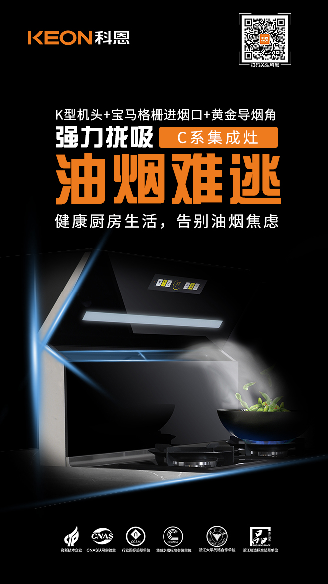 在烹飪環節,側吸下排不跑煙是集成灶的必備基本功深受大眾喜愛,科恩C260在此基礎上突破常規,創造性的采用以KEON首字母K為標識的機頭設計,其俯沖式角度、搭配寶馬格柵進煙口,在深腔的加持下,攏吸效果更為出色,三者相輔相成,形成黃金控煙區,同步搭配瞬吸大吸力,把油煙扼殺在萌芽狀態,油煙不過臉,無懼猛火爆炒挑戰,縱享無煙廚房!