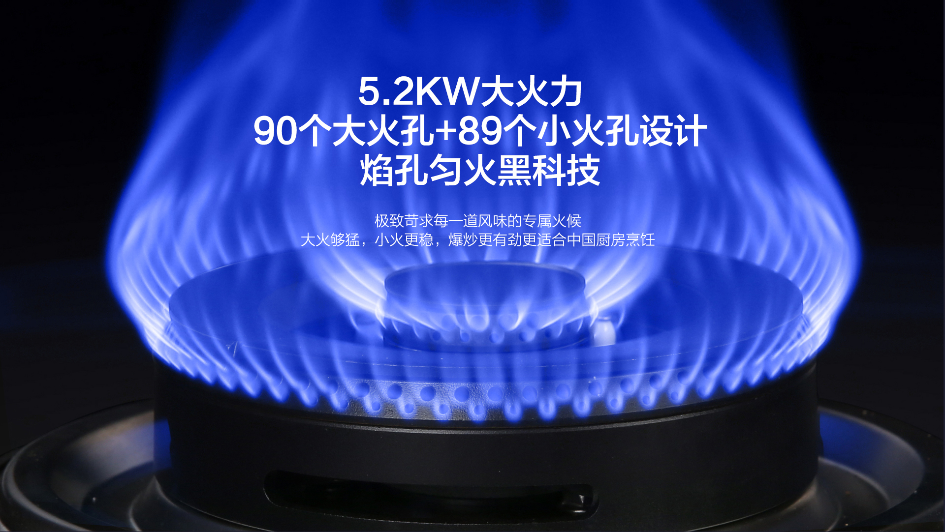 ◆5.2kW大火力,一級能效,更適合中國廚房烹飪,大火夠猛,小火更穩,爆炒更有勁 !