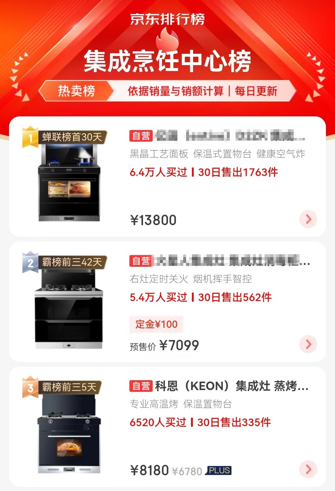 金九銀十家裝季,恰逢中秋將至,以家裝和婚嫁帶動(dòng)的金九銀十消費(fèi)旺季已然來臨,各大廚電品牌又迎來了新一輪交鋒,結(jié)合當(dāng)下廚房集成化需求的帶動(dòng),集成烹飪中心已然成了當(dāng)下市場(chǎng)主流!科恩D28蒸烤炸一體集成灶作為京東潛力新品,以其出色的性價(jià)比兼顧外觀與實(shí)用性備受消費(fèi)者青睞,自8月18日上架至今,不到一個(gè)月時(shí)間便殺入京東集成烹飪中心熱賣排行榜,牢牢鎖定榜單前三甲,銷量持續(xù)領(lǐng)跑,總體表現(xiàn)極為亮眼,強(qiáng)悍實(shí)力不容小覷!