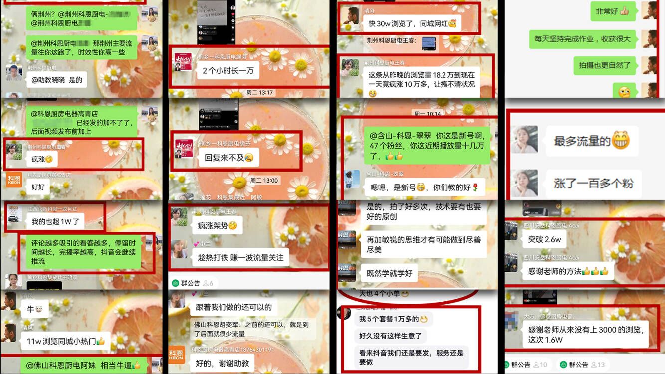近日,科恩電器創辦的抖音實戰培訓班(第三期初級班、第一期高級班)已順利結業,近600名培訓學員,涵蓋了廚電衛浴、全屋定制、環保凈水、石材涂料、櫥柜五金等家居建材行業,他們當中有抖音小白、資深網紅、業界大咖、更有知名同行友商,在通過系統專業的抖音實戰培訓之后,破萬播放量已成日常,數據反饋不斷創造歷史新高,更有40W+高播放率、百萬抖音熱門紛至沓來!