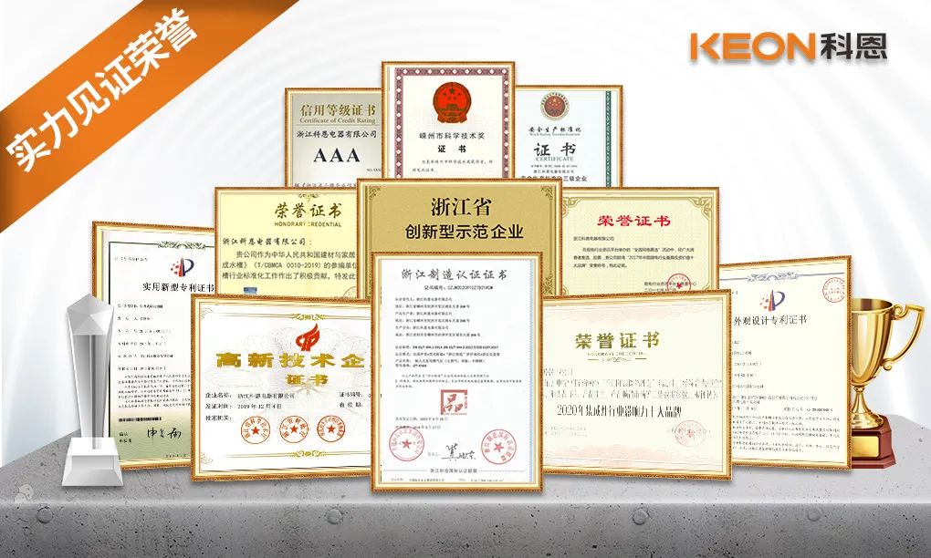 品質(zhì)彰顯,載譽(yù)前行!科恩電器始終以匠心鑄就品牌榮耀勛章,用品質(zhì)獲得了行業(yè)和消費(fèi)者的普遍認(rèn)可,擁有高新技術(shù)企業(yè)、專利示范企業(yè)、集成灶十大品牌、集成水槽十大品牌、行業(yè)國標(biāo)起草單位、高效凈化環(huán)保之星、CNAS認(rèn)可實(shí)驗(yàn)室、浙江制造標(biāo)準(zhǔn)起草單位、集成灶團(tuán)體標(biāo)準(zhǔn)起草單位、建材與家居專業(yè)標(biāo)準(zhǔn)《集成水槽》參編企業(yè)等榮譽(yù)。并擁有百余項(xiàng)專利技術(shù)認(rèn)證,參與并起草多項(xiàng)標(biāo)準(zhǔn),為行業(yè)的技術(shù)研發(fā)提供數(shù)據(jù)支撐,一個(gè)個(gè)的榮譽(yù)背后,見證著科恩贏得了眾多消費(fèi)者的信賴與支持。