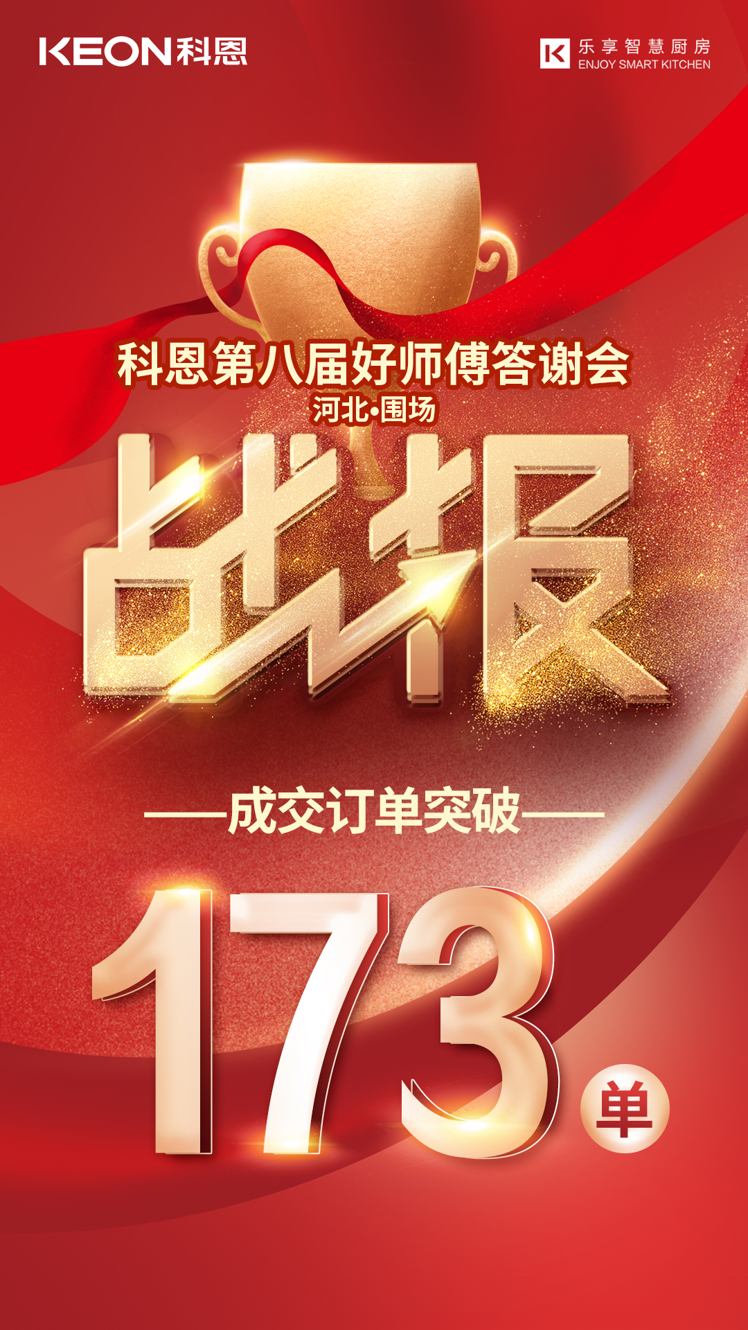 4月11日晚,科恩河北圍場專賣店“科恩電器第八屆好師傅答謝會(huì)”在中天宴會(huì)廳召開,以173單的好成績圓滿落幕。