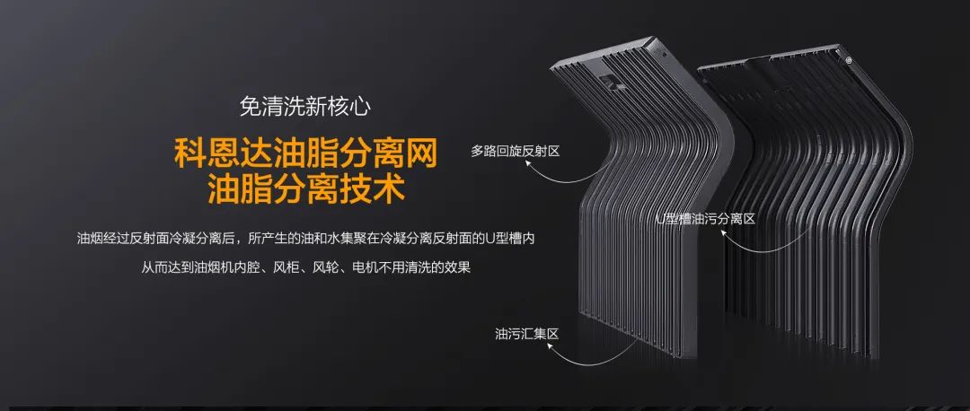 科恩免清洗煙機獨創科恩達油脂分離網,采用易潔太空壓鑄鋁材,經過酸洗-噴砂工藝加之特氟龍噴涂最后高溫燒結,不僅不沾油、易清潔更好打理。在分離油煙的同時,還能防火阻熱!保障廚房安全!