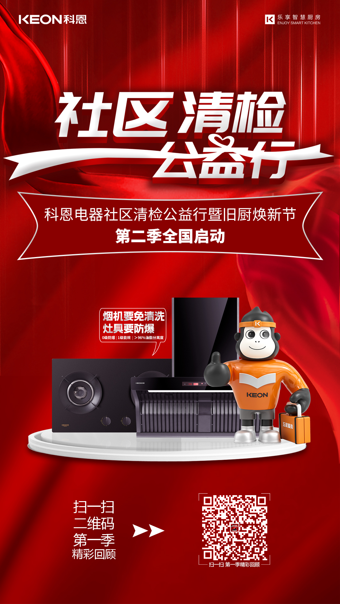 2023年,廚電行業面臨嚴酷挑戰,怎么結合當下市場發展情況撬動新增量是企業需要思考的問題。科恩緊跟國家政策,深入開展家電以舊換新政策,以“社區清檢公益行”為主題深入千家萬戶。