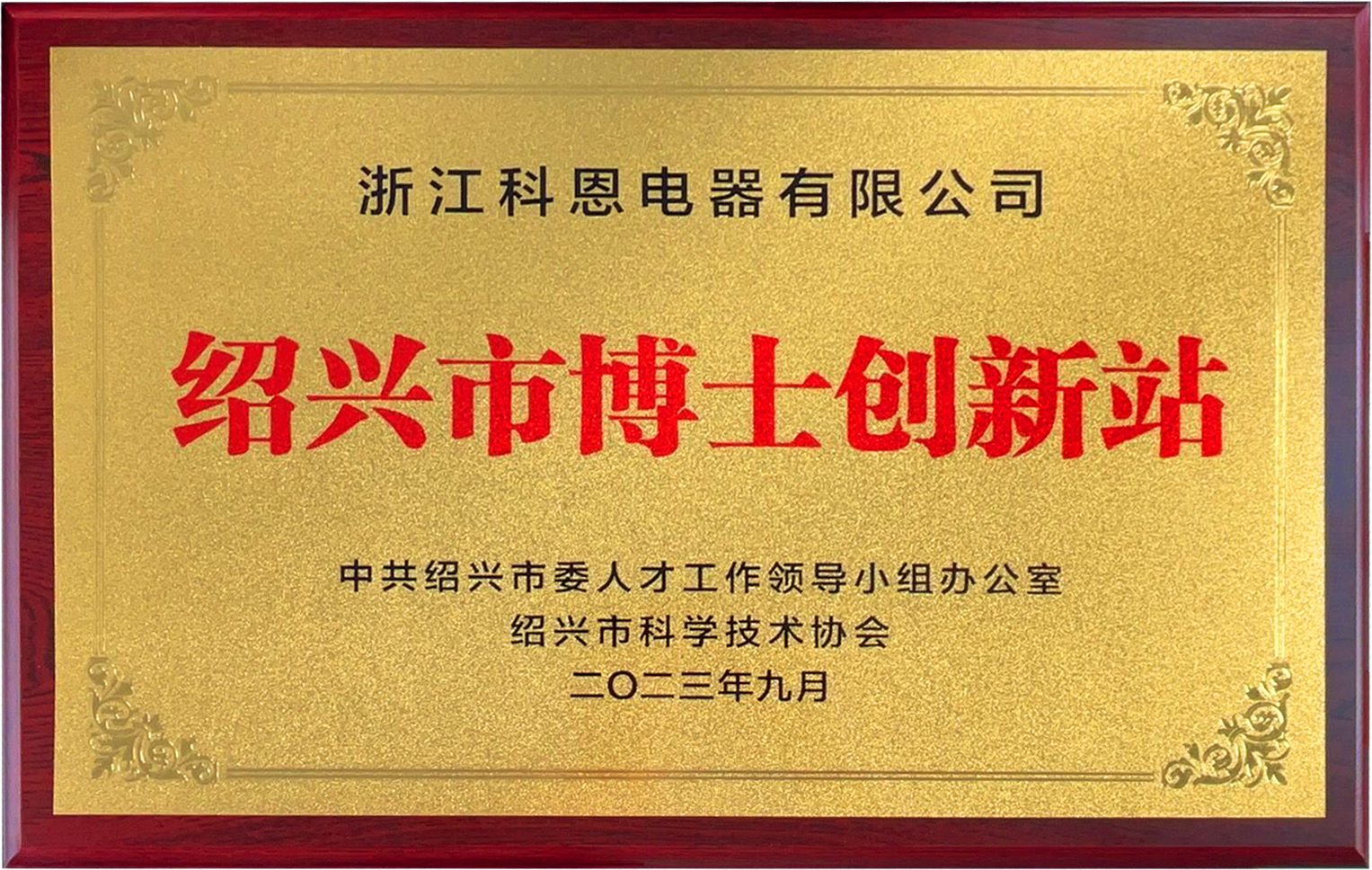 日前,中共紹興市委人才工作領導小組辦公室、紹興市科學技術協會聯合發文公布浙江科恩電器有限公司入選“紹興市博士創新站”!