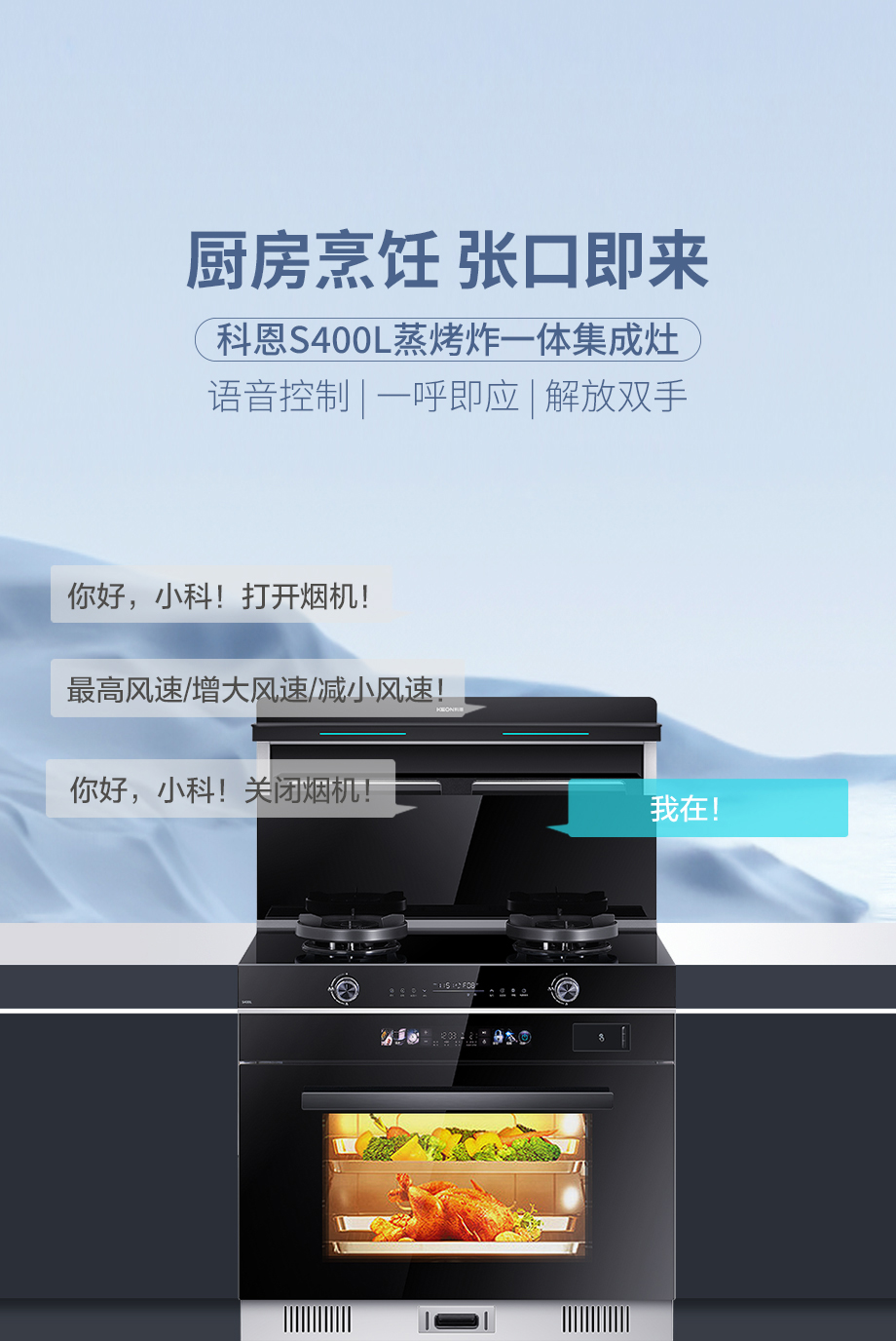 廚房烹飪,張口即來!一句“你好小科”,開啟一天烹飪生活!S400L內(nèi)置語音控制一呼即應,真正解放雙手。