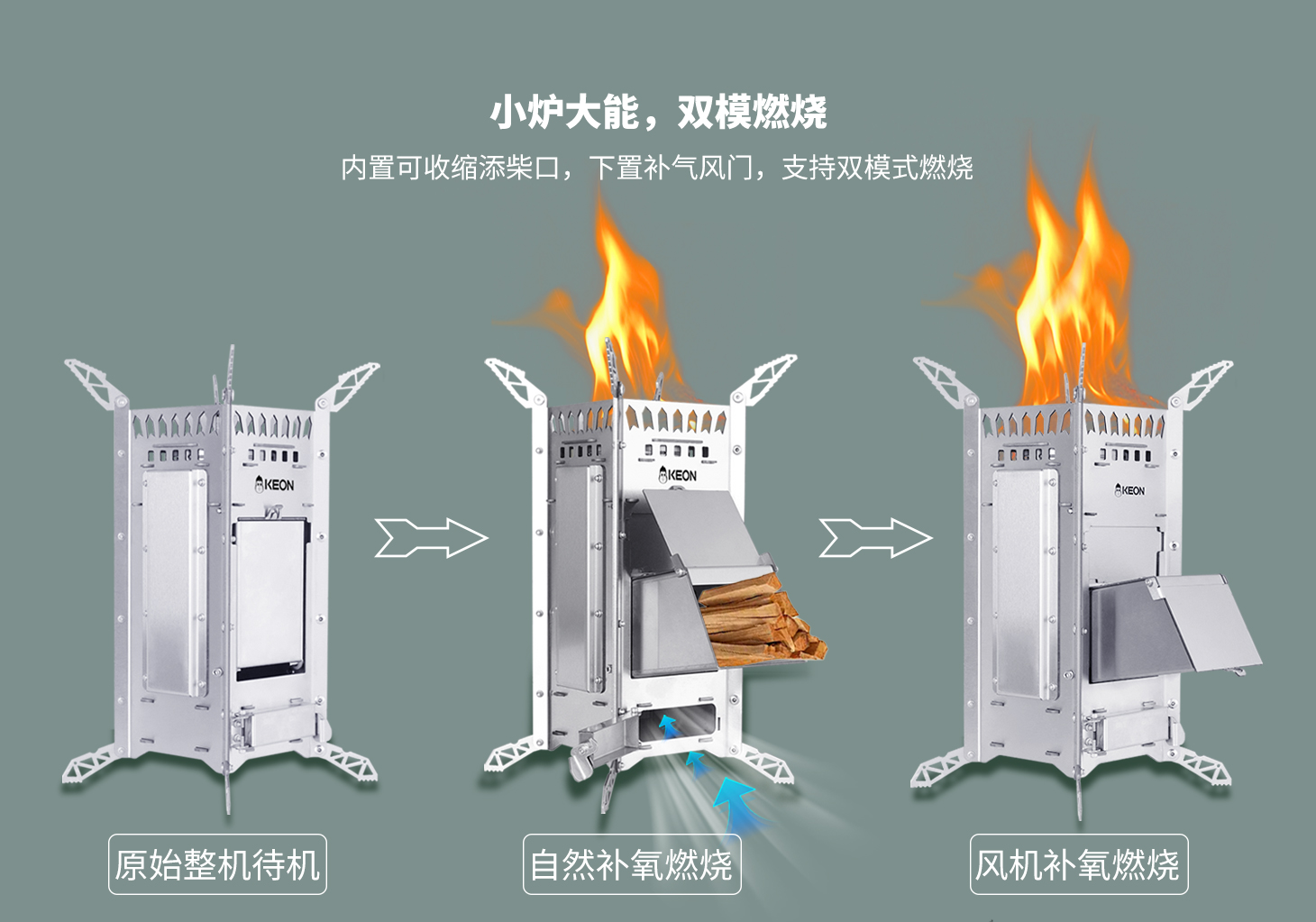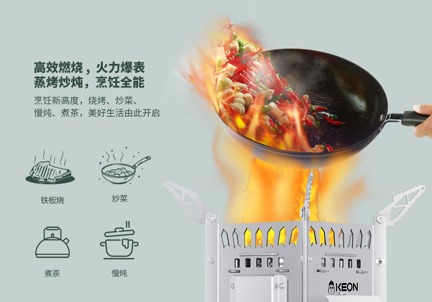 傳統(tǒng)爐灶的嗆鼻濃煙模糊了山色,科恩提供全新解決方案,火箭爐S12設(shè)置3D繞流供氧系統(tǒng)。科學(xué)供養(yǎng),猛火無煙,可調(diào)支撐腳,穩(wěn)立碎石坡地。熱效率超傳統(tǒng)爐具250%,省柴省心更省空間,從野餐到探險全覆蓋。