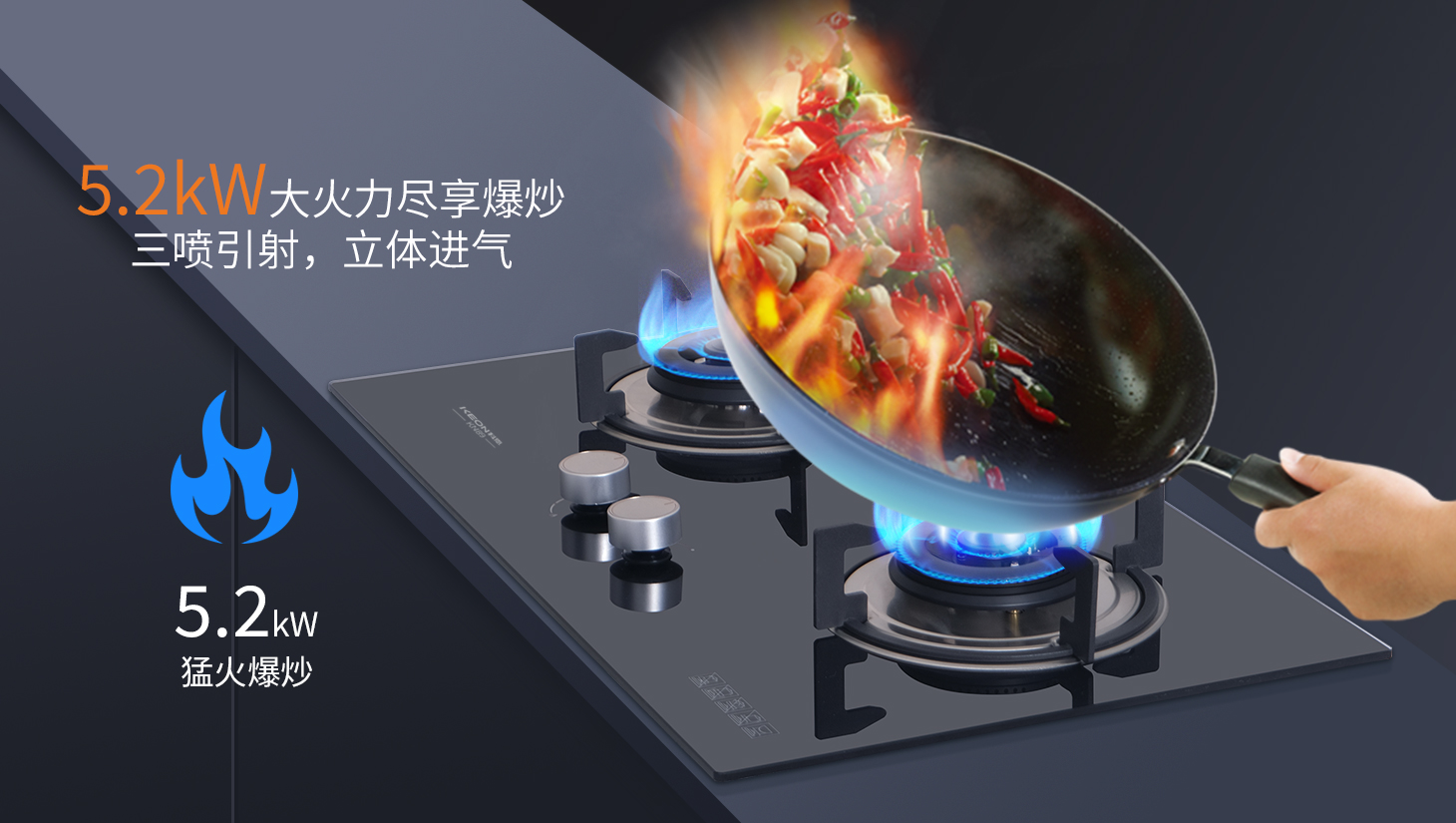 黑晶鋼化玻璃重塑清潔革命防爆面板扛得住重擊油漬一抹即凈。搭載航空級鋁合金燃燒器,防油防銹,不易變形。三年如一日的光潔質感科恩灶具KN89無懼爆炒,采用懸浮式燃燒系統,充分補氧,助力燃燒。5.2KW火力全開,高效爆炒鎖住食物鮮香,點燃烹飪激情。搭配黑色搪瓷防滑爐架,耐高溫不易變形,火蓋與分火器一體設計。避免清洗后錯裝,KN89細節處盡顯貼心。
