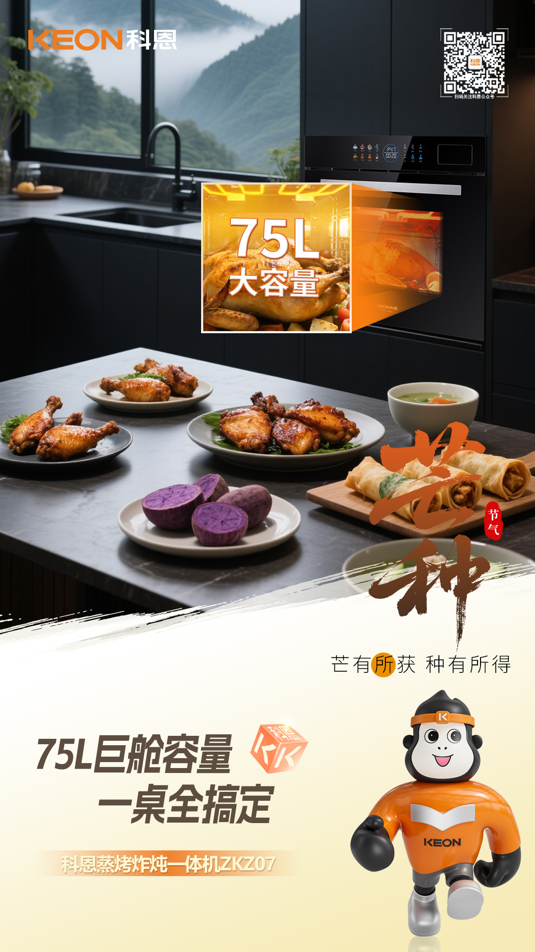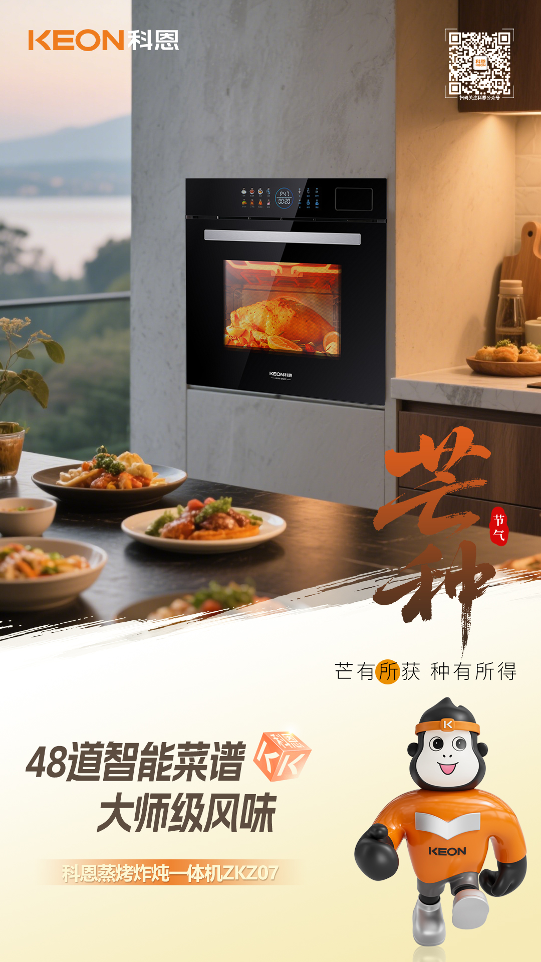 仲夏蟬鳴起,新麥入倉時(shí)。芒種麥香濃,廚房煥新章。科恩匠心推出ZKZ07蒸烤炸燉一體機(jī),用科技重新定義烹飪藝術(shù),讓每一道菜都成為時(shí)令佳作,為家人帶來舌尖上的驚喜!