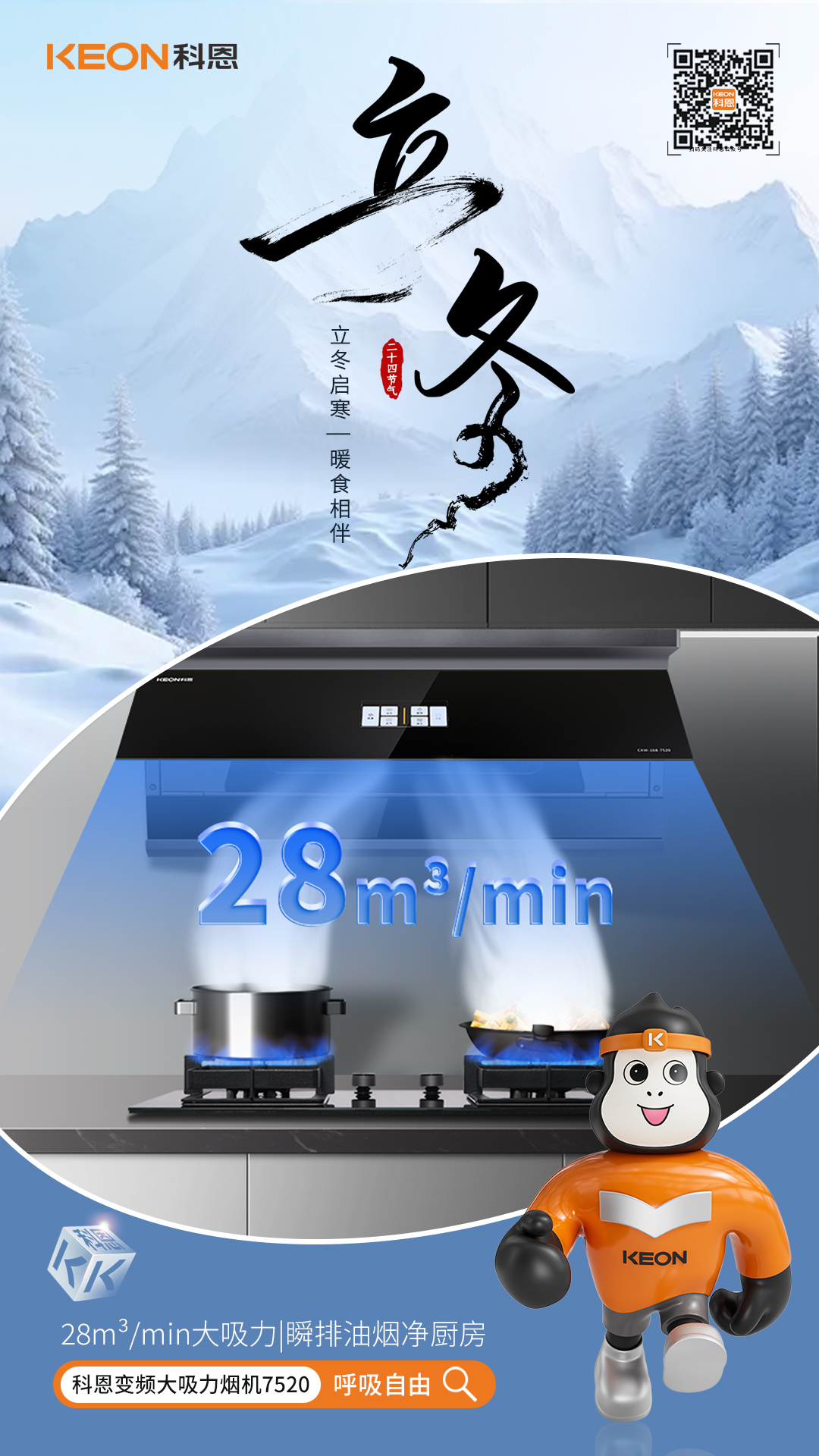 舊廚煥新,暖廚無憂。立冬暖味需好器廚房煥新正相宜科恩電器全程相伴,打造智能健康新廚房。讓廚房暖起來,讓美味不等待共度暖冬好食光