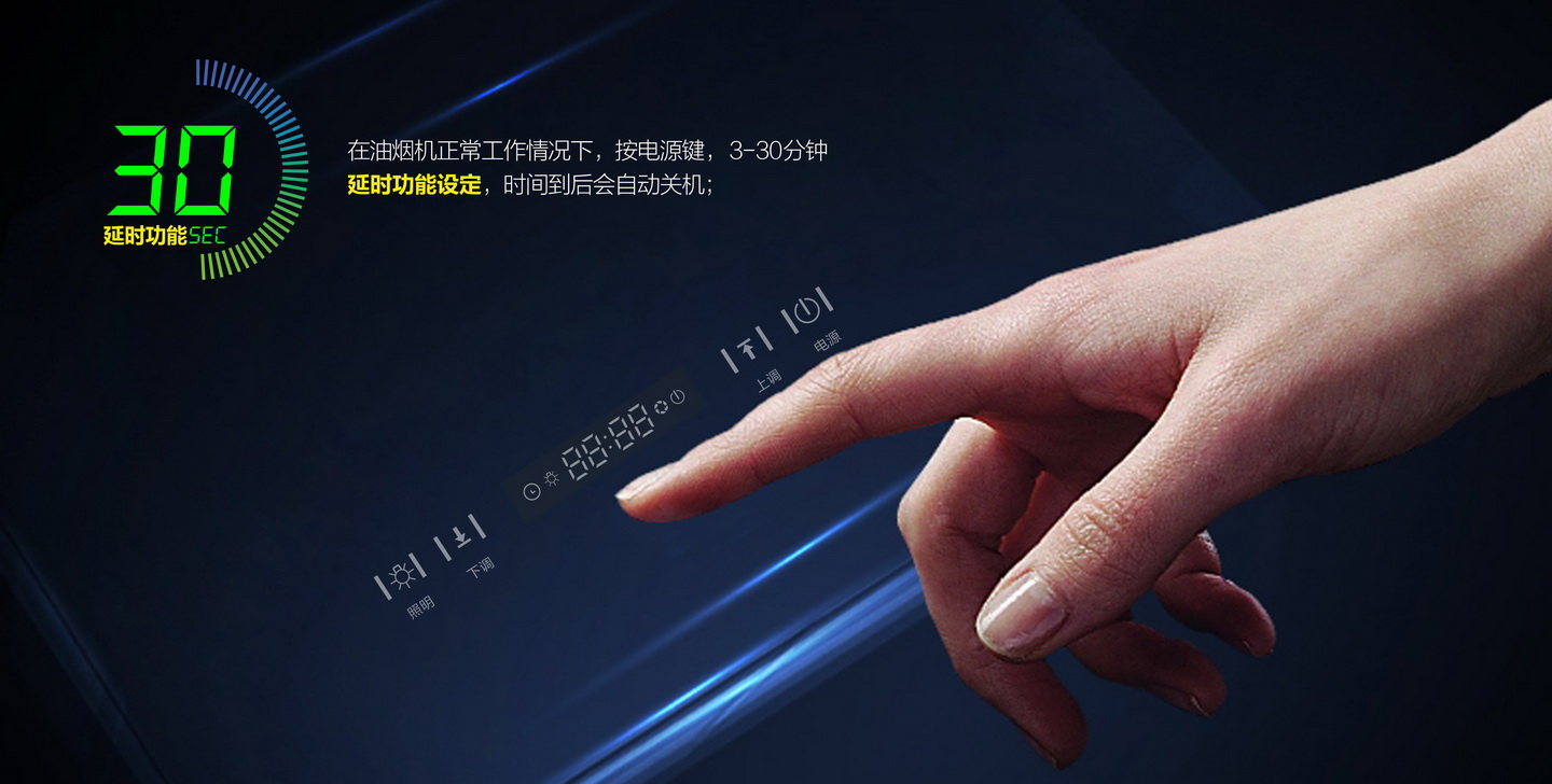 • 在油煙機正常工作情況下,按電源鍵,時間到后會自動關機。