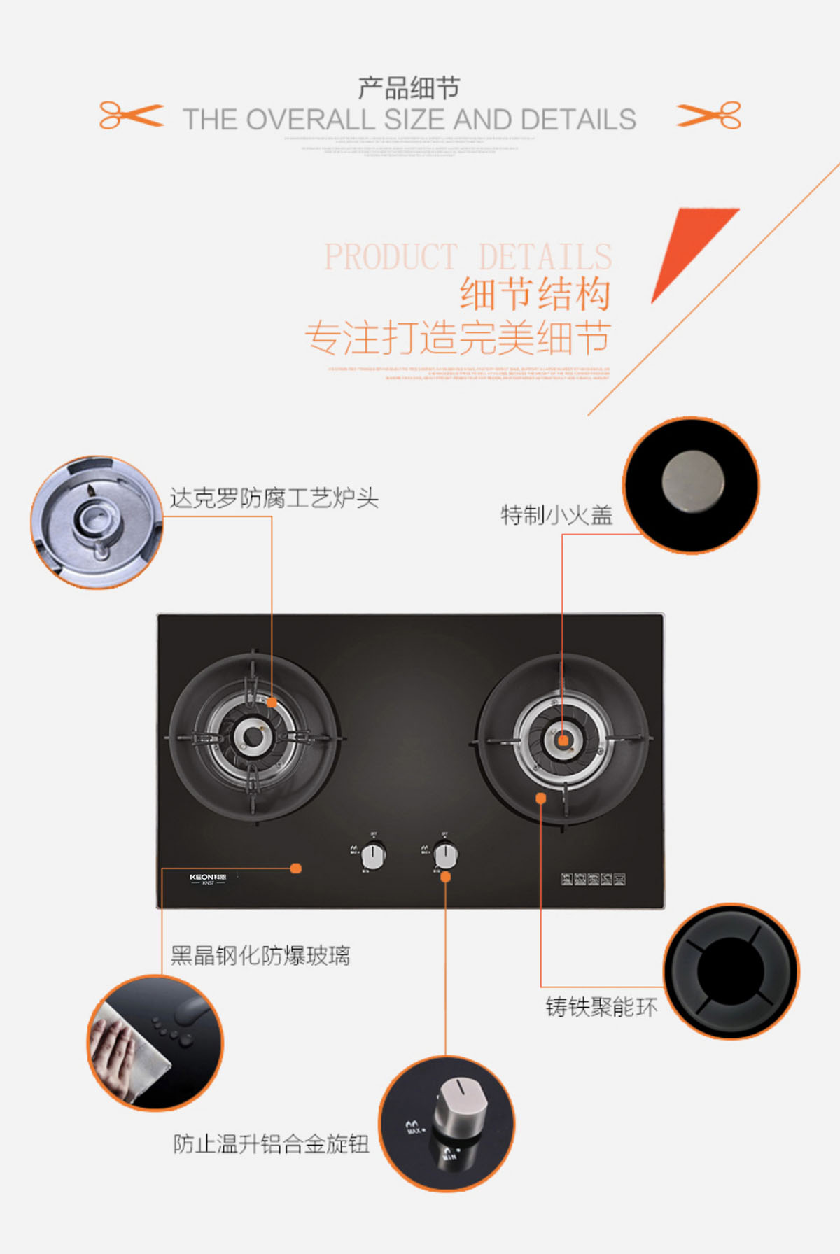 • 微動開關控火系統,靈敏強勁。氣電分離,杜絕氣電隱患。