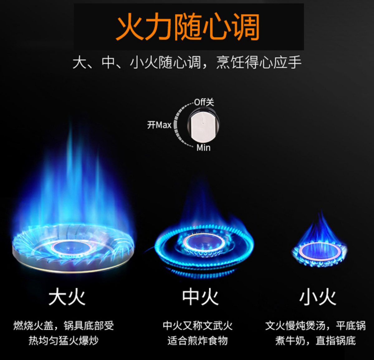 • 特制小火蓋,火藍有力,熱效率達65%-67%,高于一級能效標準。