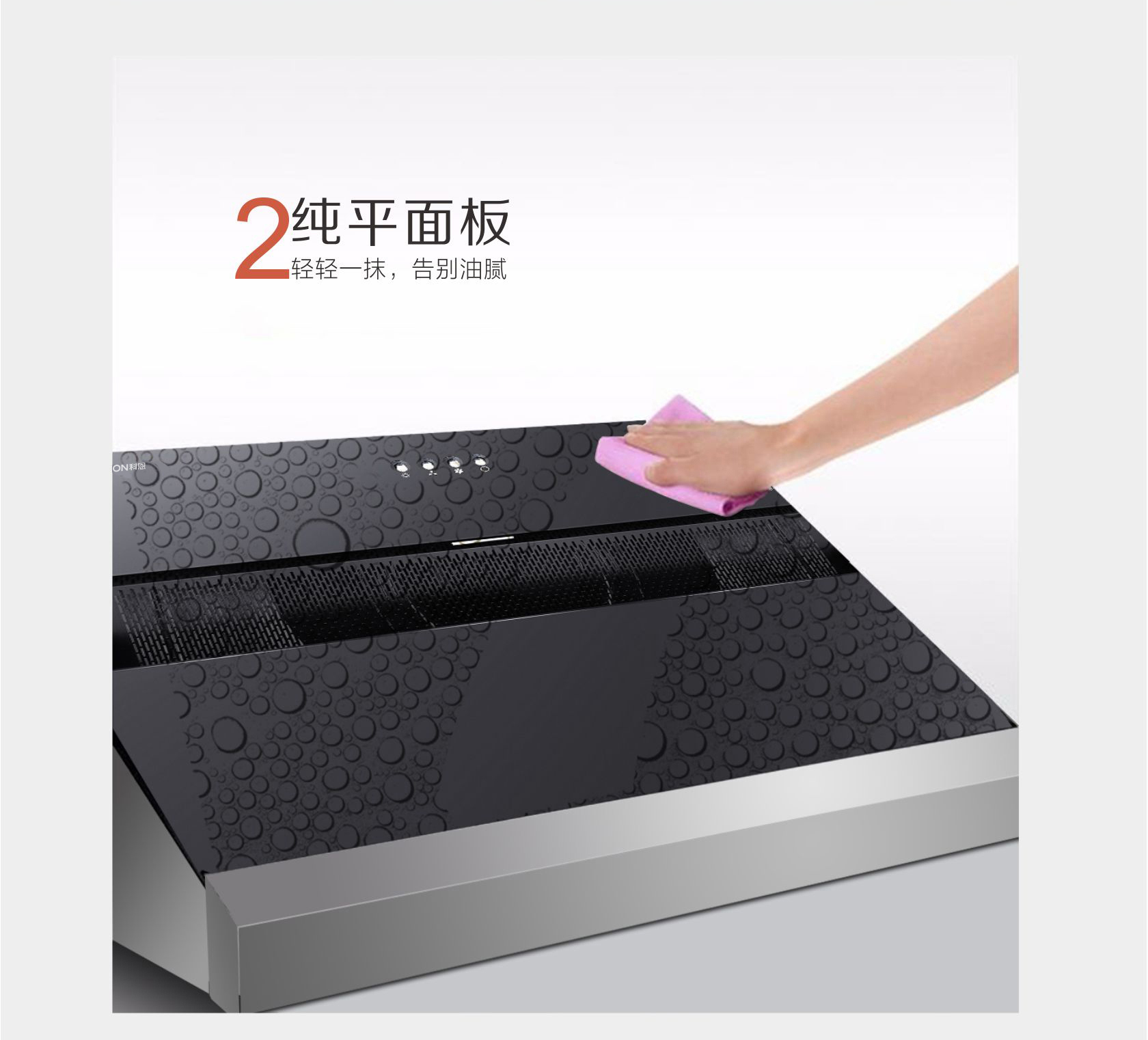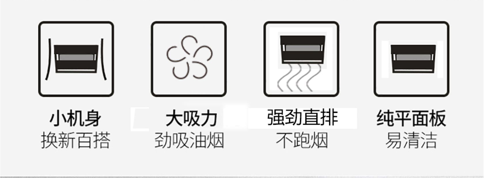- 凈力出擊,強(qiáng)勁直排,颶風(fēng)爆吸技術(shù),無懼爆炒,凈煙更快。