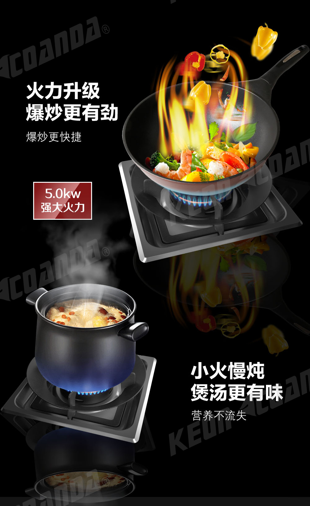 • 5.0KW火候,大火夠猛,小火更穩,爆炒更舒心