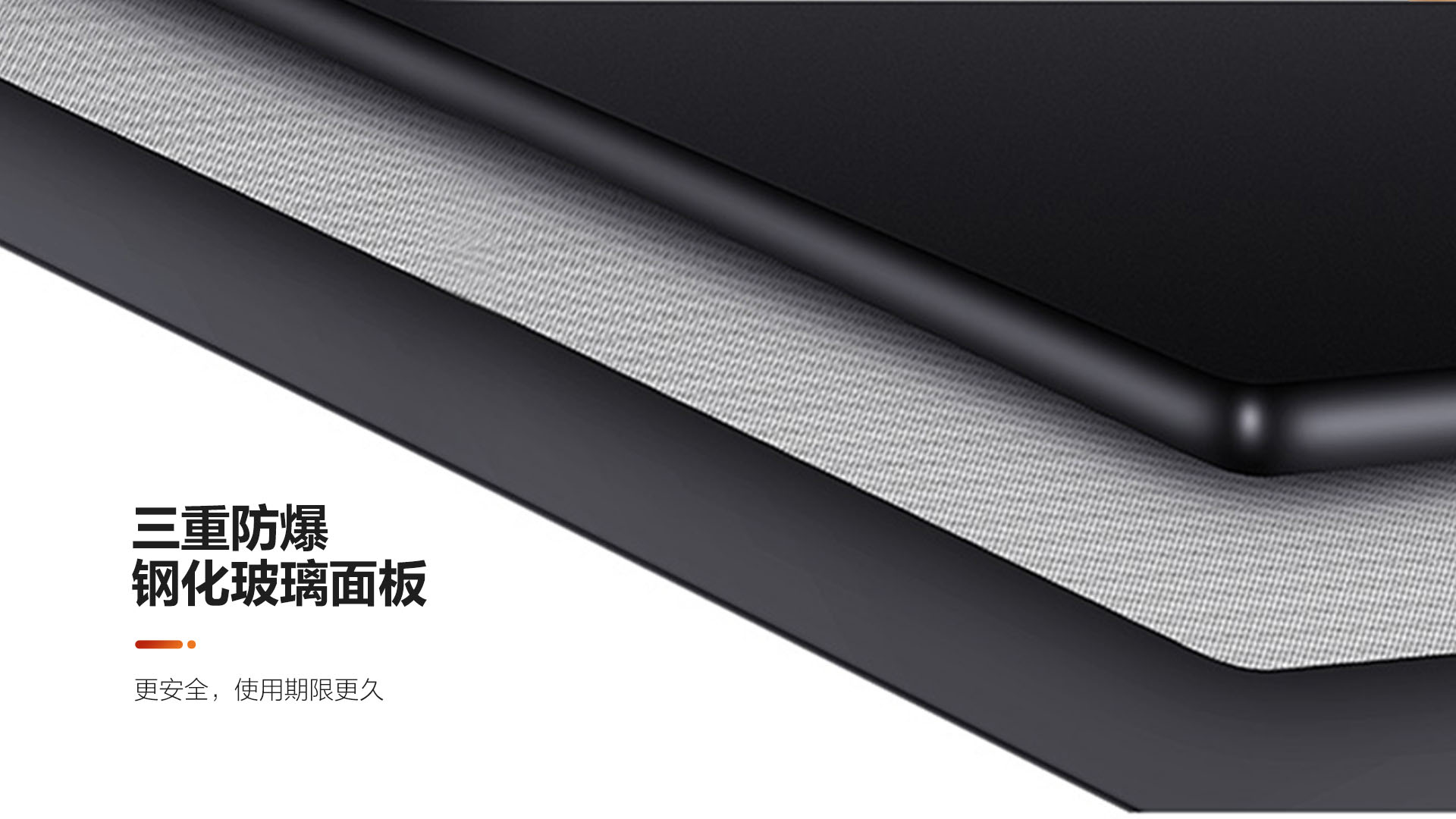 • 三重防爆鋼化玻璃面板,易清洗、耐沖擊和抗高溫。