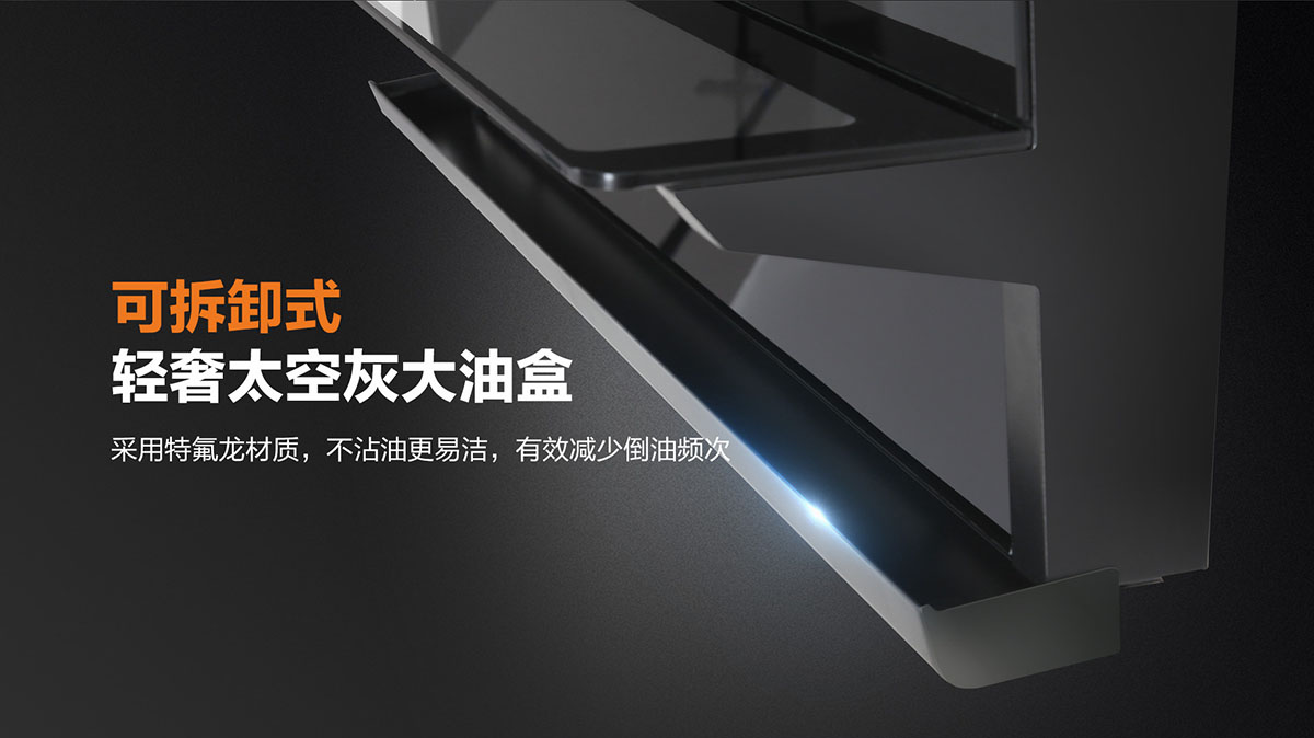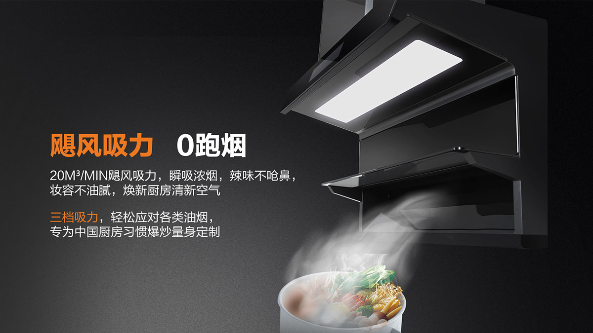 - 獨(dú)特黃金吸煙角,二次冷凝板內(nèi)傾設(shè)計(jì),油煙不過臉