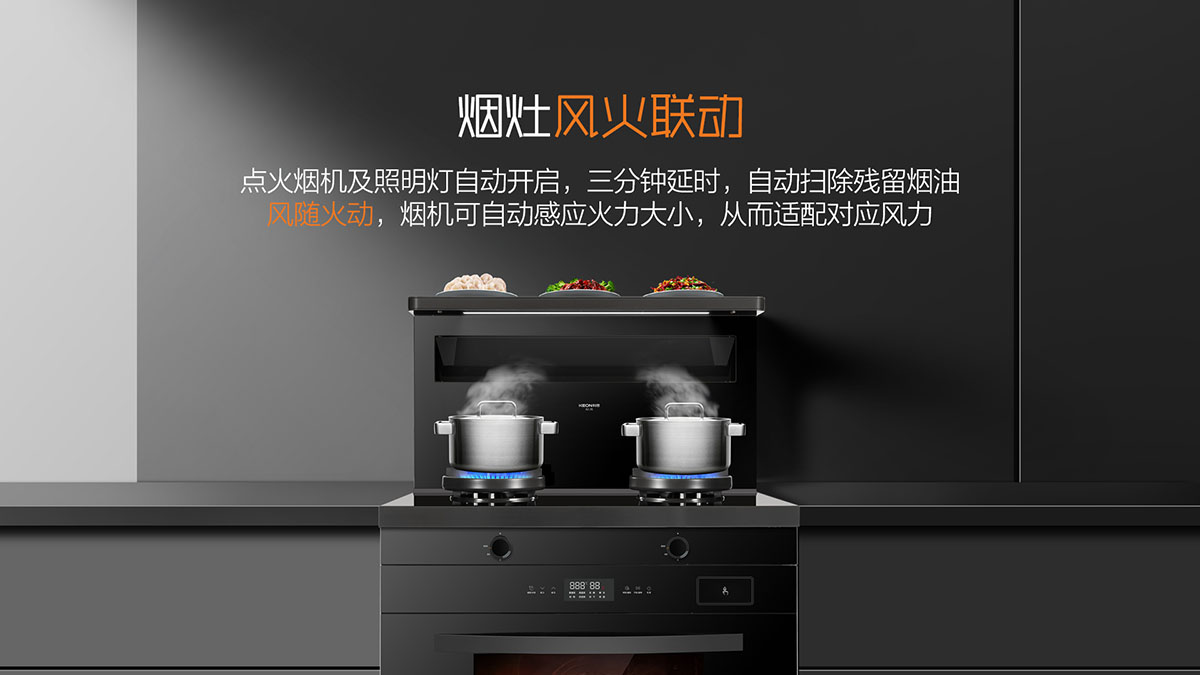 - 蒸烤一體款集成灶,八大功能智能集成,省錢省空間又實用