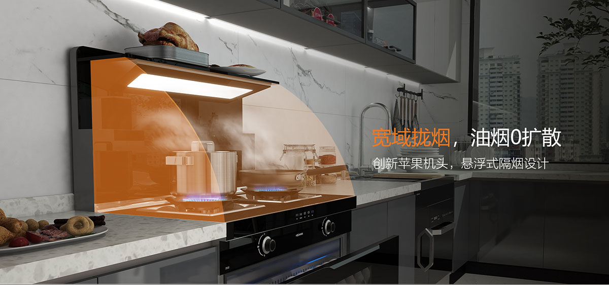 - 懸浮式隔煙設計,寬域攏煙,油煙0擴散