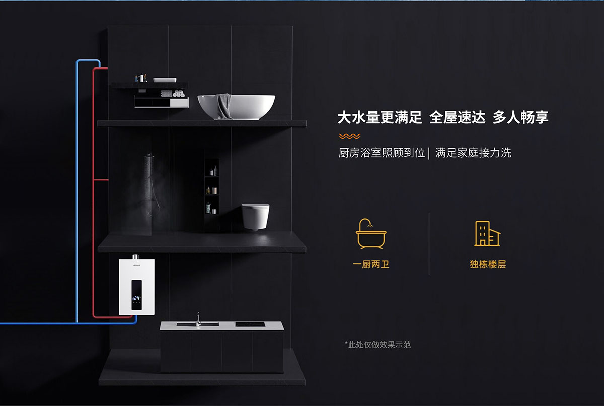 - 分段燃燒技術,水溫調節范圍大,水溫調節速度更快
