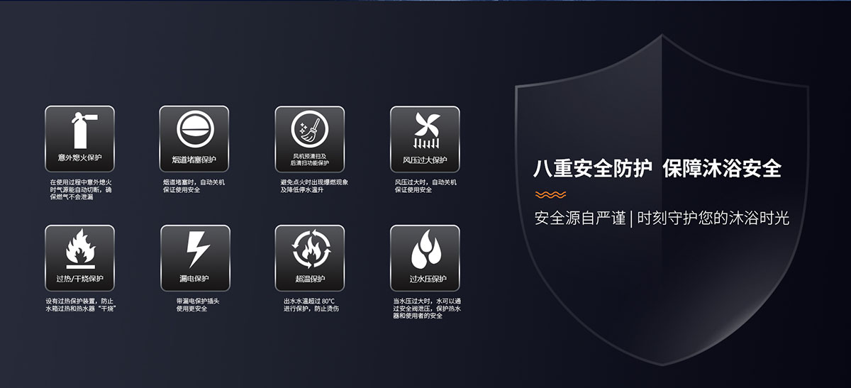 - 安全排氣裝置,當意外停電、煙道堵塞時自動關閉燃氣