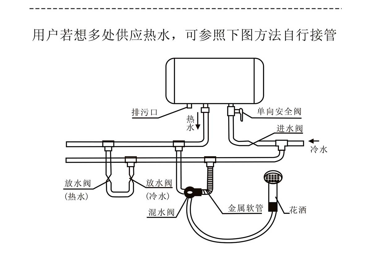 - 適應(yīng)水壓范圍廣,熱水容量大,可同時(shí)供給多個用水點(diǎn)用水