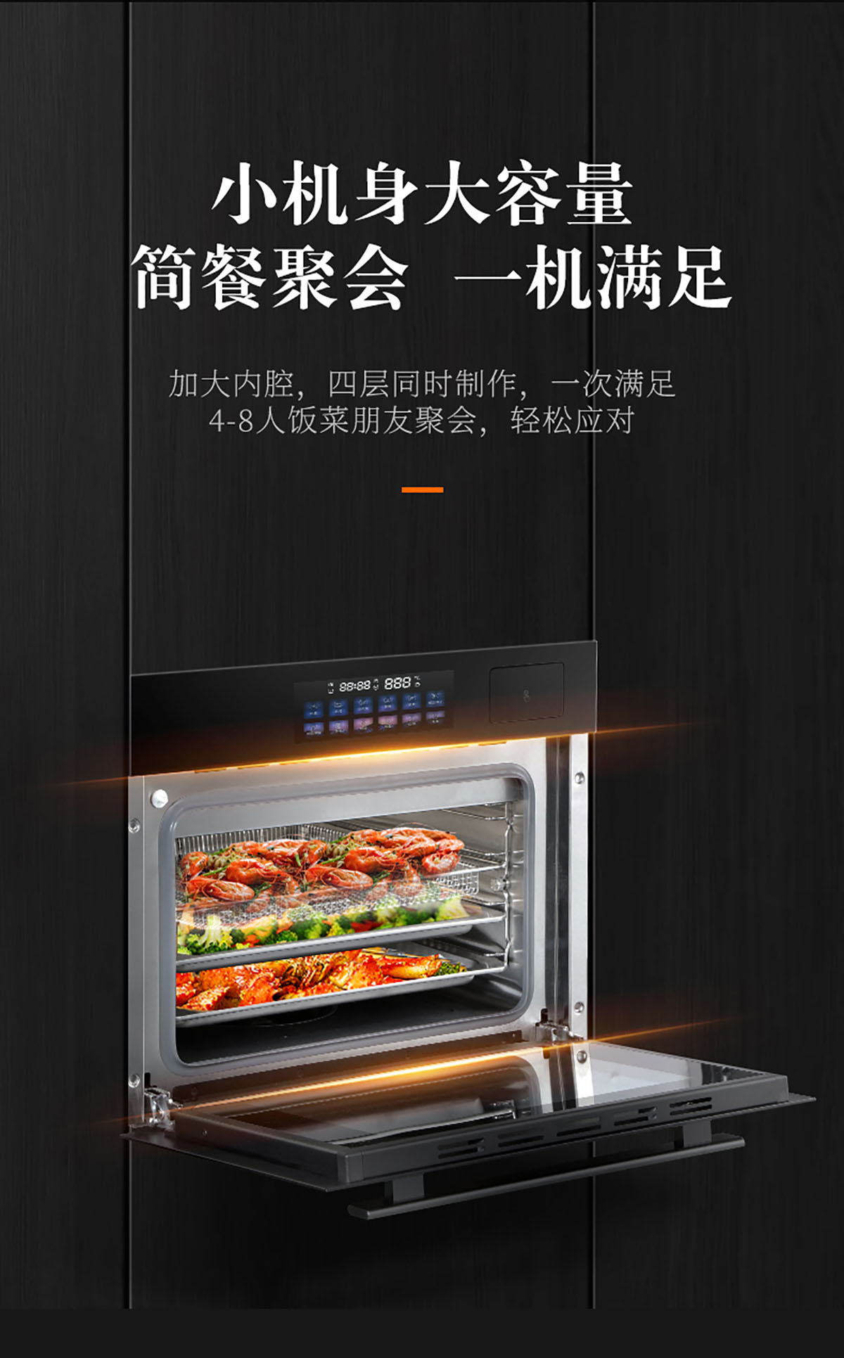 50L大容積四層擱架,可滿足多菜同時烹飪