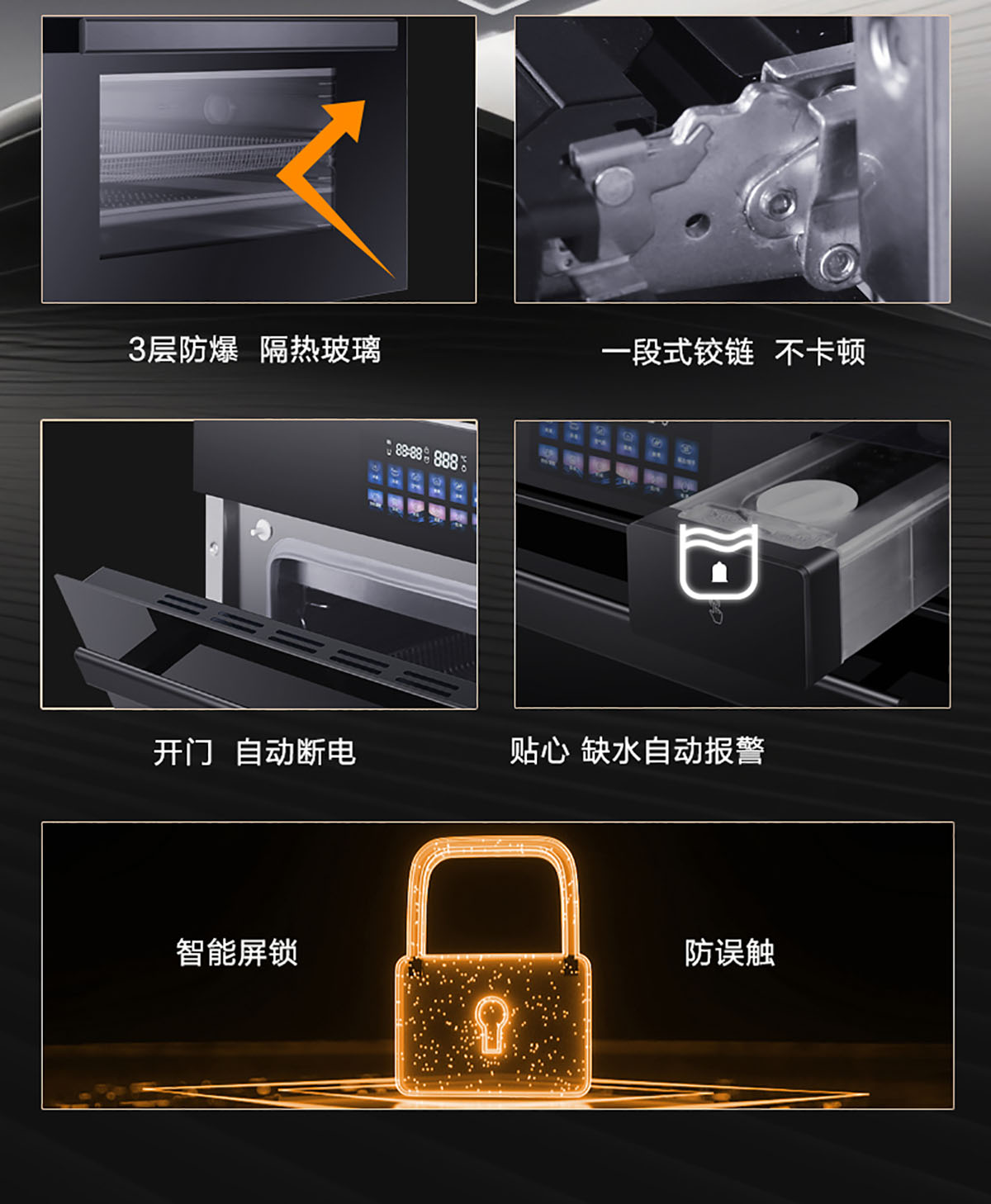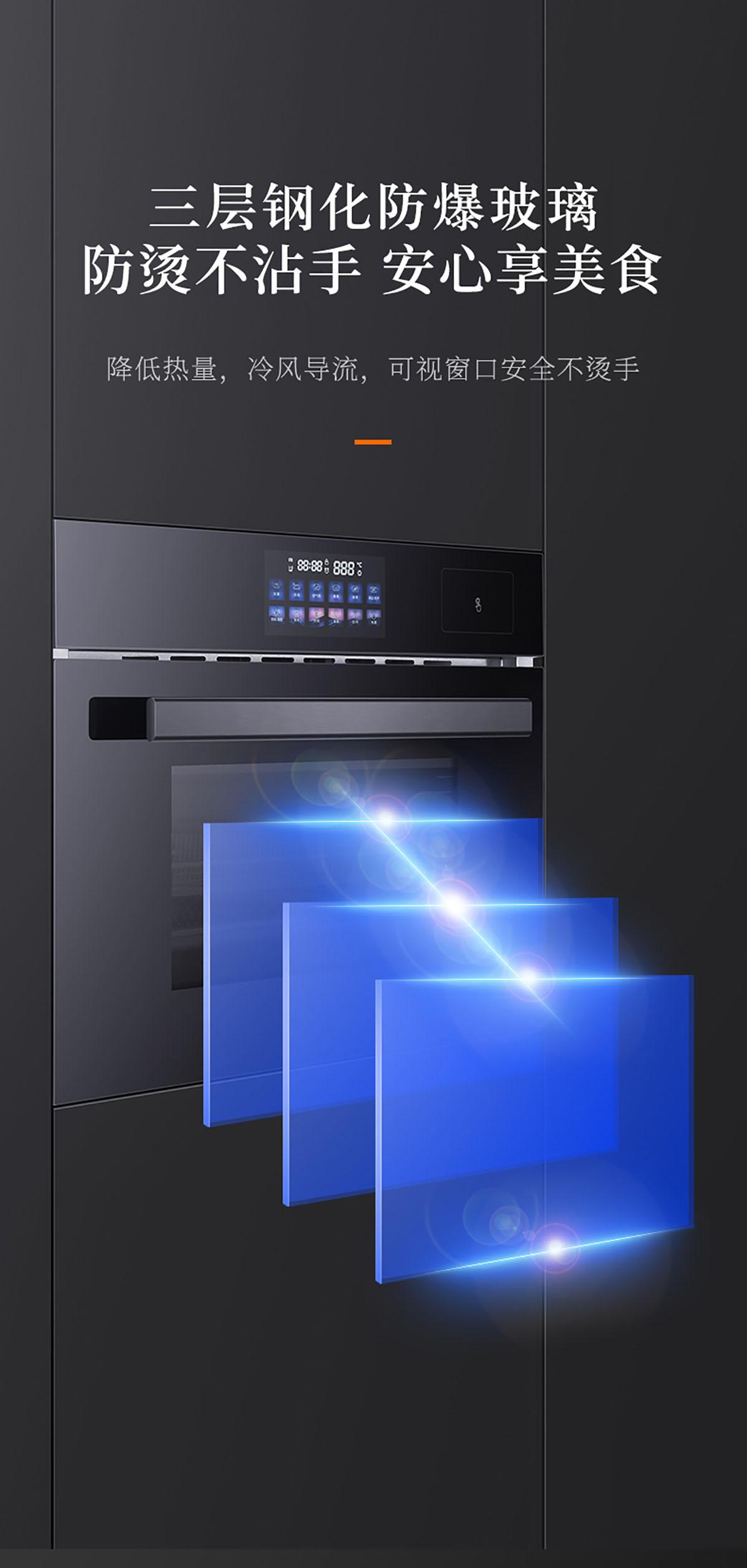 三層玻璃門板耐熱防爆,確保使用過程不燙手