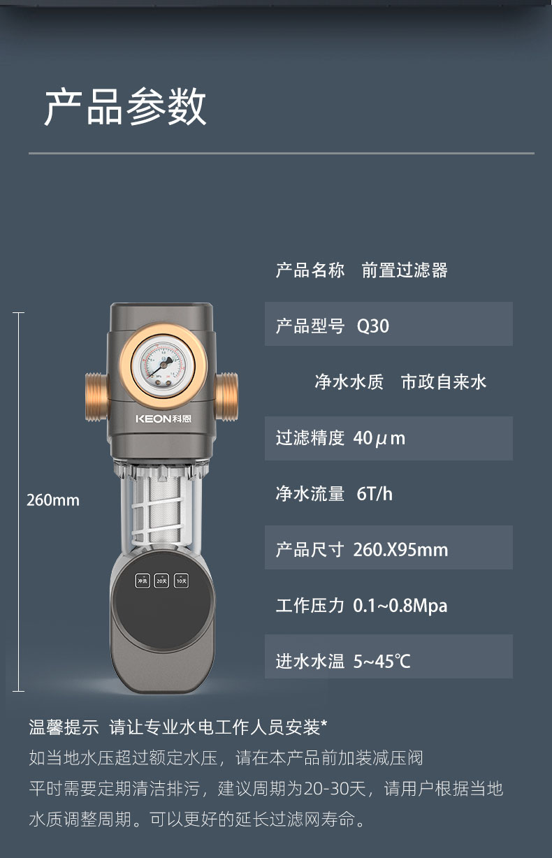 • 40μm過濾精度,精密不銹鋼濾網,提升水質