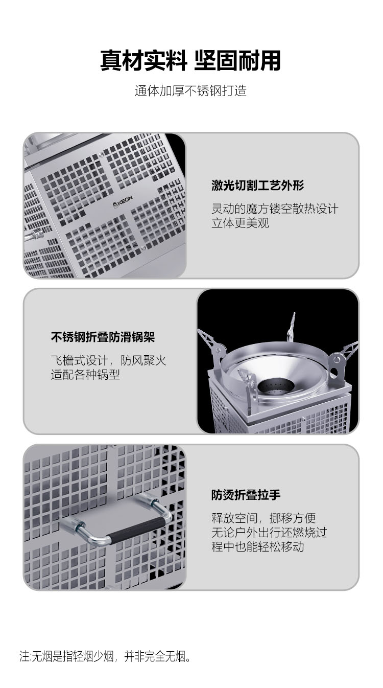 - 3D繞流爐膛,科學供氧,猛火無煙