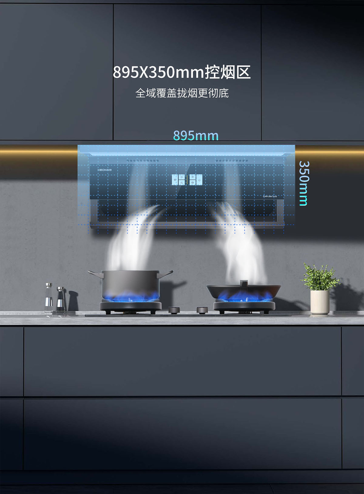 - 895X350mm控煙區(qū),全域覆蓋攏煙更徹底