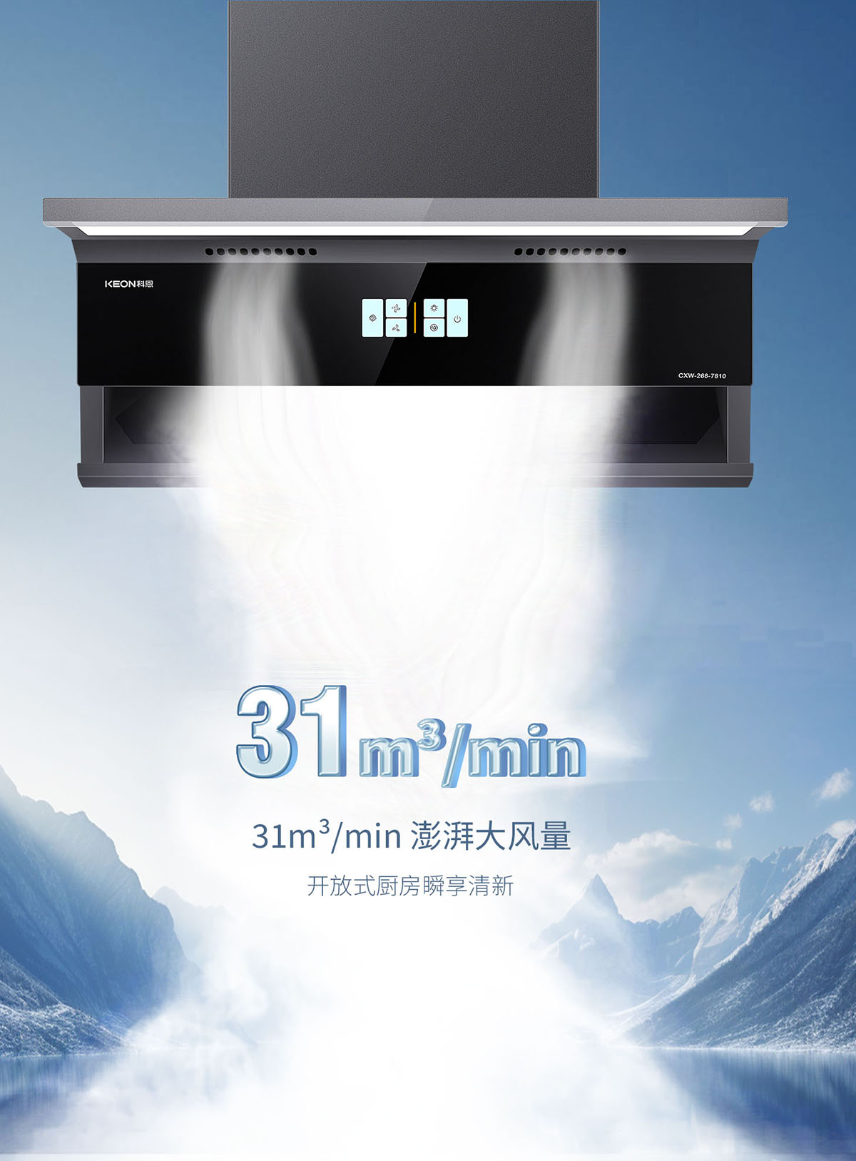 - 31m³/min 澎湃大風量,爆炒油煙3秒清場