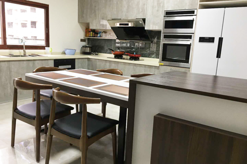 科恩廣西經(jīng)銷商提供的9011煙機和蒸箱廚房實景